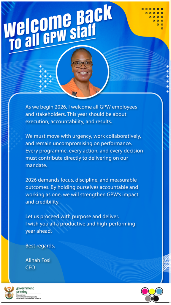 As we begin 2026, I welcome all GPW employees and stakeholders. This year should be about execution, accountability, and results.